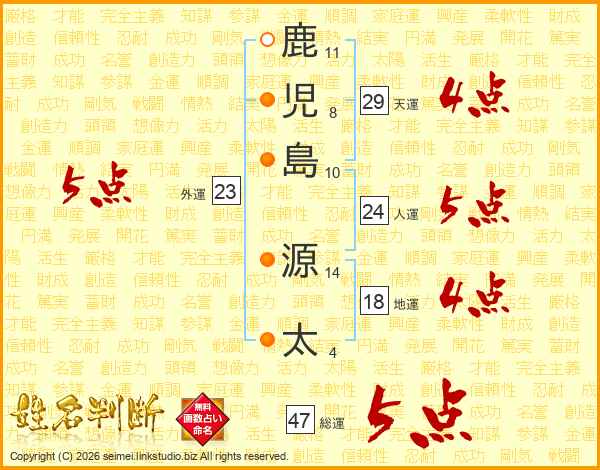 鹿児島源太さんの総運は47画の5点!