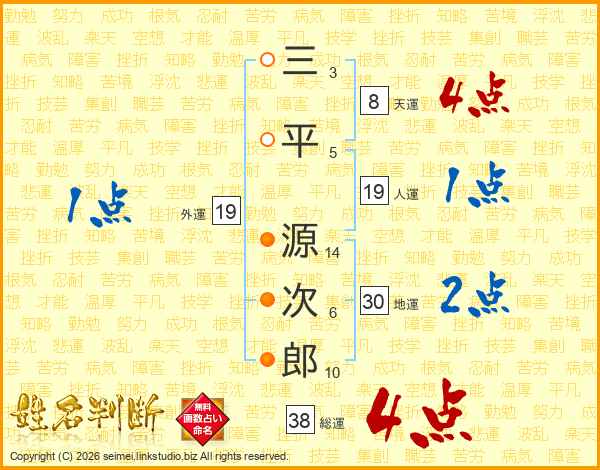 三平源次郎さんの総運は38画の4点!