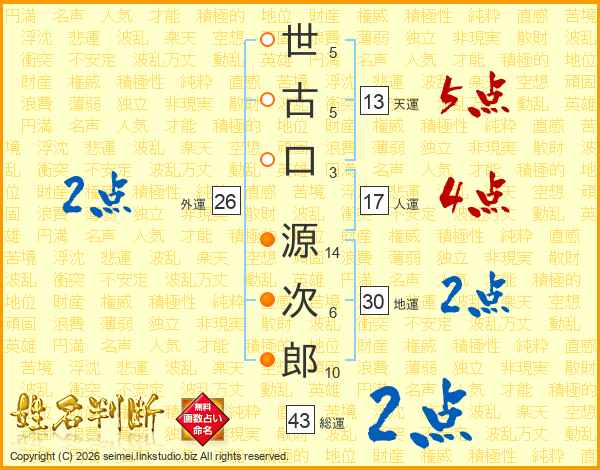 世古口源次郎さんの総運は43画の2点!