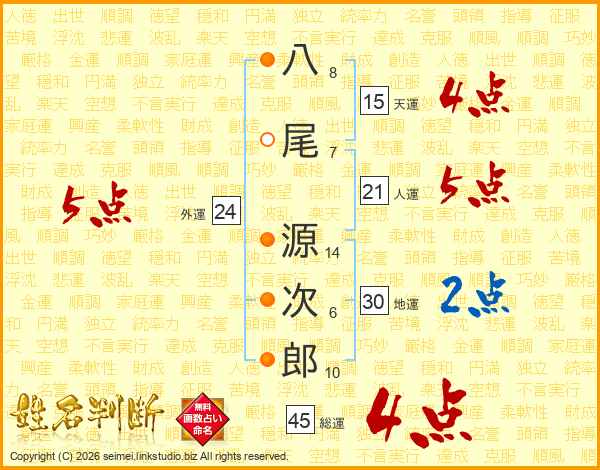 八尾源次郎さんの総運は45画の4点!