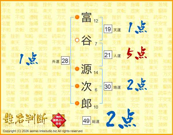 富(12画)谷(7画) 源(14画)次(6画)郎(10画)