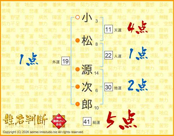 小(3画)松(8画) 源(14画)次(6画)郎(10画)