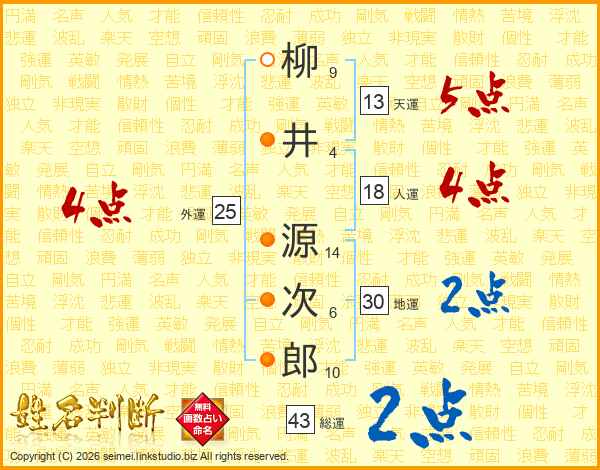 柳井源次郎さんの総運は43画の2点!