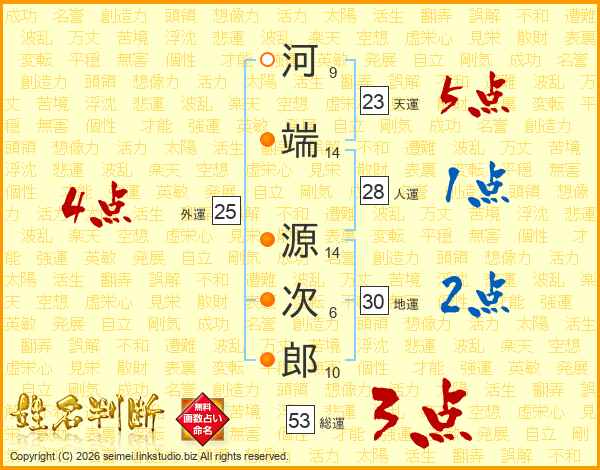 河端源次郎さんの総運は53画の3点!