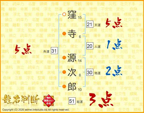 窪寺源次郎さんの天運は21画の5点!