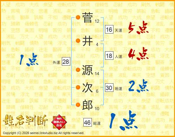菅井源次郎さんの総運は46画の1点!