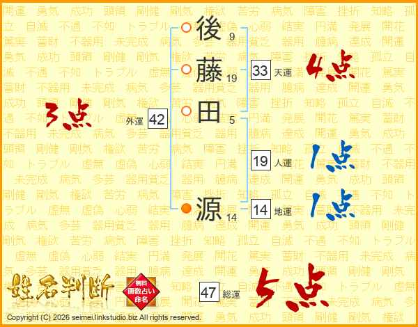 後藤田源さんの総運は47画の5点!