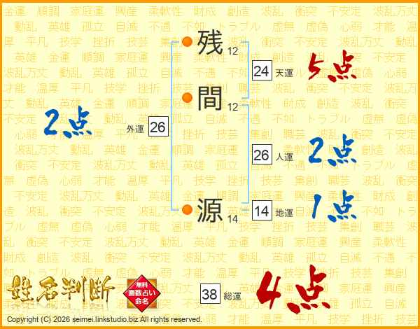 残間源さんの総運は38画の4点!