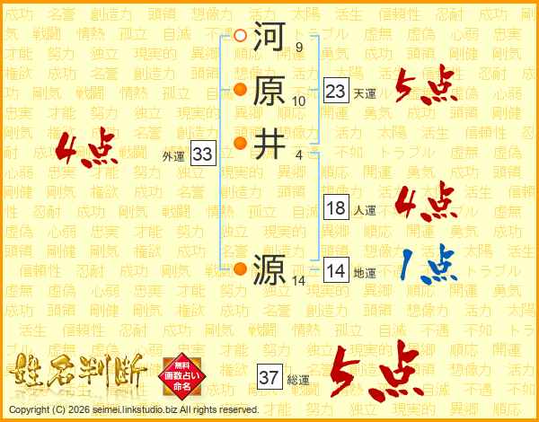 河原井源さんの総運は37画の5点!