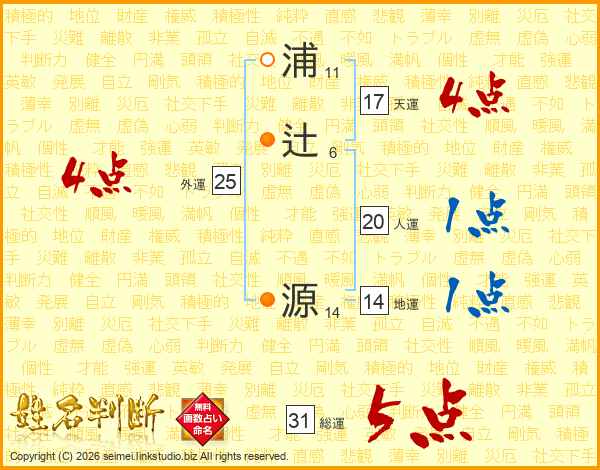 浦辻源さんの総運は31画の5点!