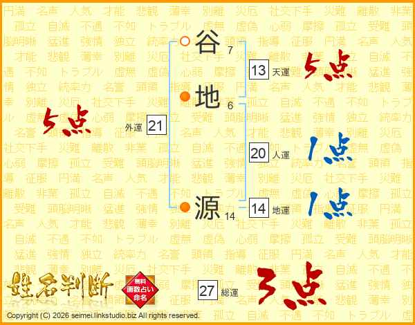 谷地源さんの外運は21画の5点!