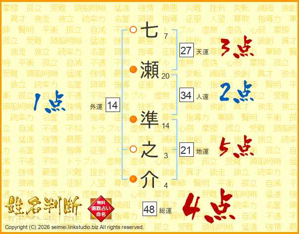七瀬準之介さんの外運は14画の1点!