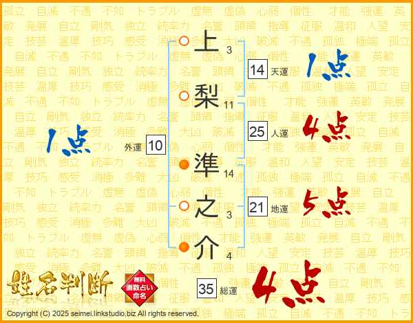 上(3画)梨(11画) 準(14画)之(3画)介(4画)