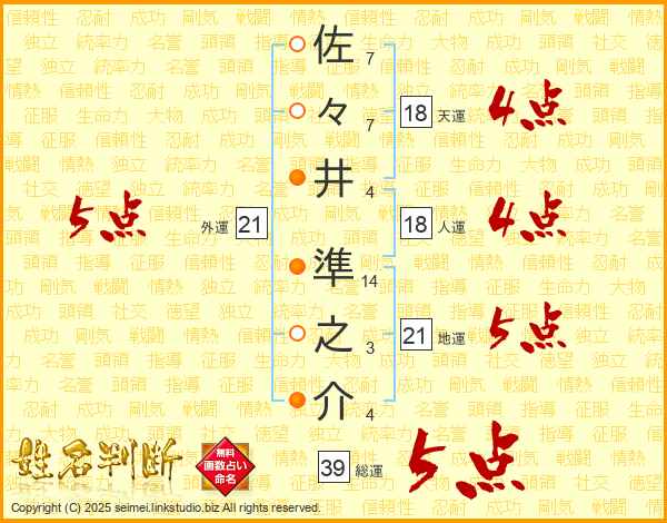 佐(7画)々(7画)井(4画) 準(14画)之(3画)介(4画)