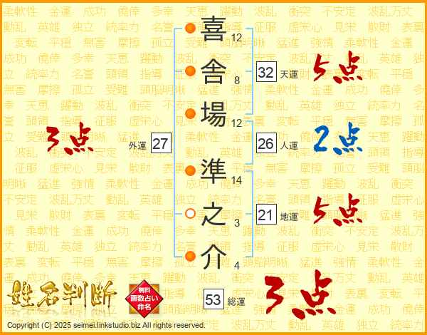 喜舎場準之介さんの総運は53画の3点!