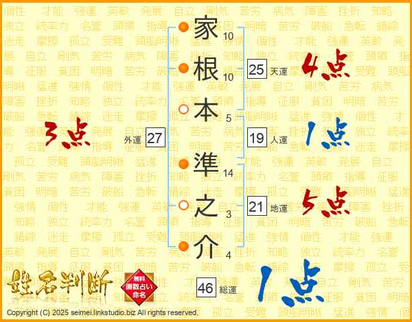 家(10画)根(10画)本(5画) 準(14画)之(3画)介(4画)