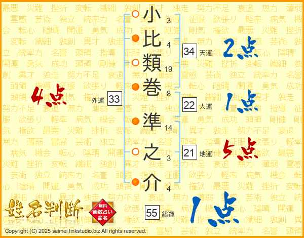 小(3画)比(4画)類(19画)巻(8画) 準(14画)之(3画)介(4画)