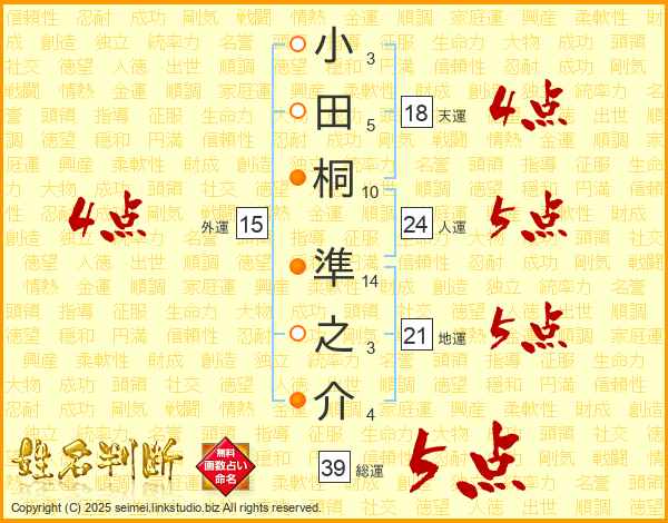 小(3画)田(5画)桐(10画) 準(14画)之(3画)介(4画)