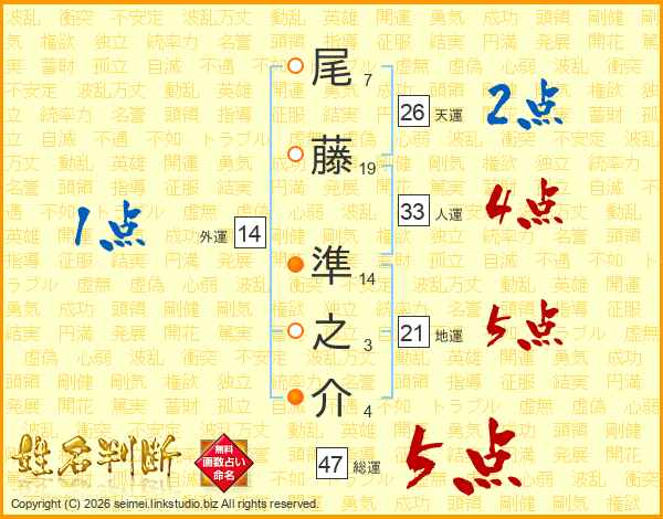 尾(7画)藤(19画) 準(14画)之(3画)介(4画)