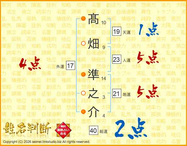 髙畑準之介さんの地運は21画の5点!