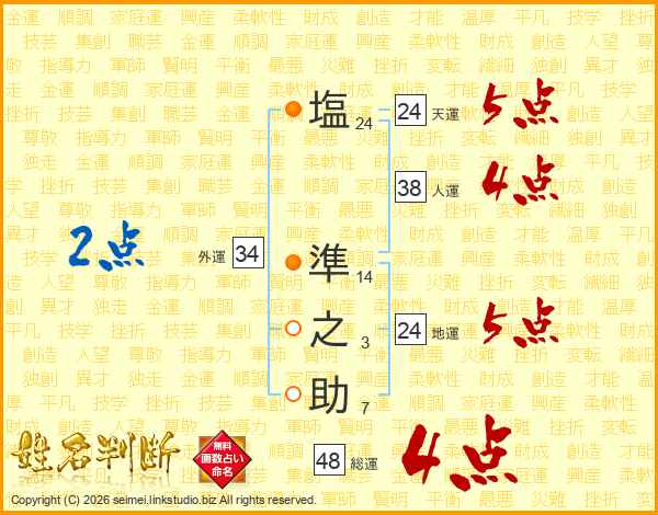 塩(24画) 準(14画)之(3画)助(7画)