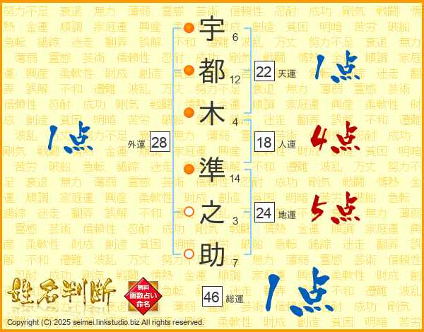 宇都木準之助さんの総運は46画の1点!
