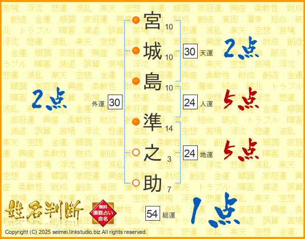 宮(10画)城(10画)島(10画) 準(14画)之(3画)助(7画)