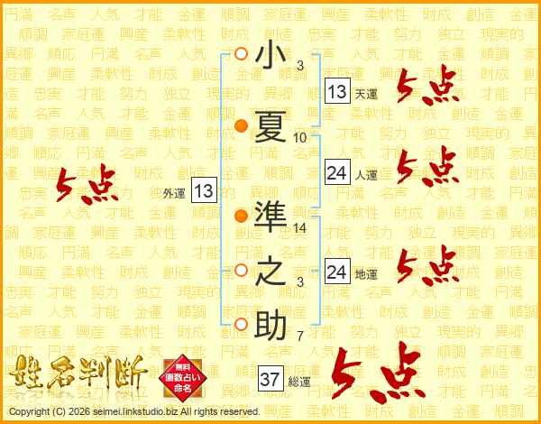 小夏準之助さんの外運は13画の5点!