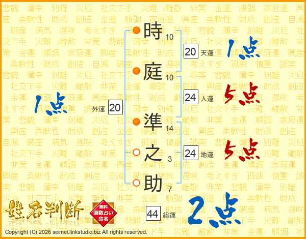 時(10画)庭(10画) 準(14画)之(3画)助(7画)