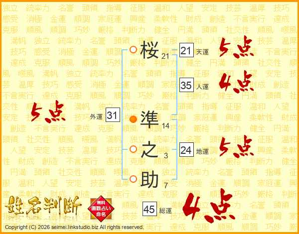 桜準之助さんの総運は45画の4点!
