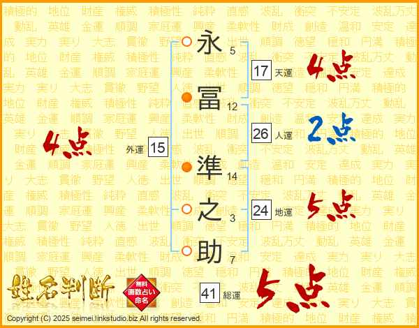永(5画)冨(12画) 準(14画)之(3画)助(7画)