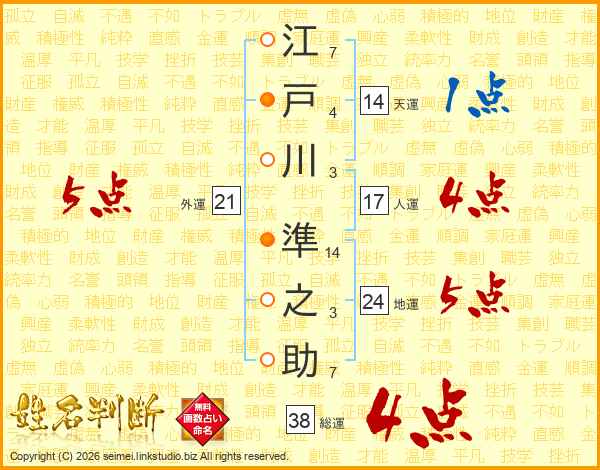 江戸川準之助さんの天運は14画の1点!