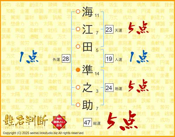 海(11画)江(7画)田(5画) 準(14画)之(3画)助(7画)