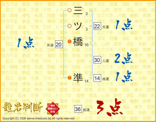 三(3画)ツ(3画)橋(16画) 準(14画)