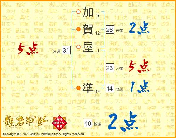 加賀屋準さんの総運は40画の2点!