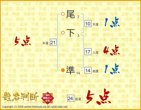 尾下準さんの総運は24画の5点!