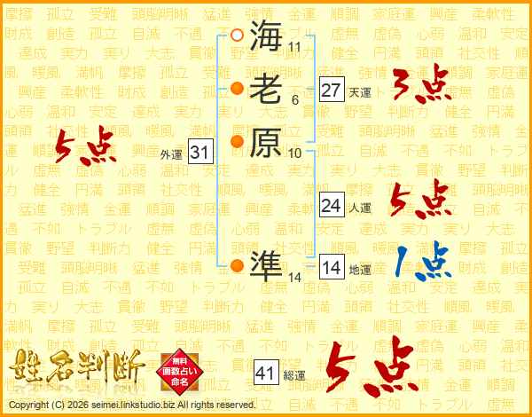 海老原準さんの人運は24画の5点!