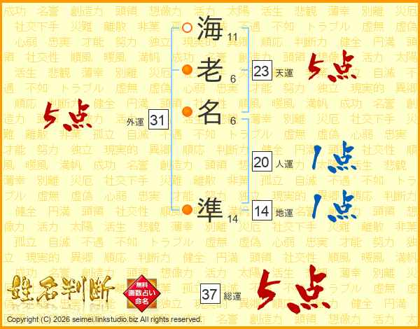 海(11画)老(6画)名(6画) 準(14画)