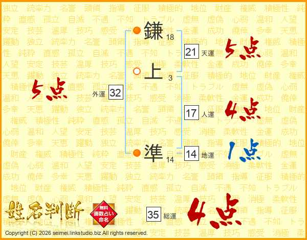 鎌上準さんの総運は35画の4点!