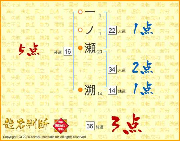 一ノ瀬溯さんの総運は36画の3点!