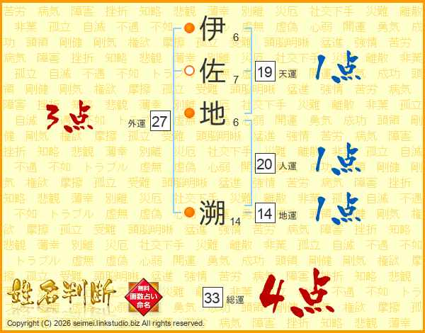 伊佐地溯さんの総運は33画の4点!