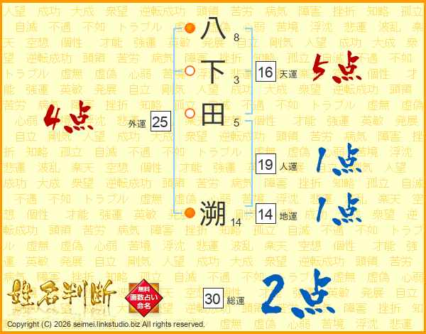 八下田溯さんの天運は16画の5点!