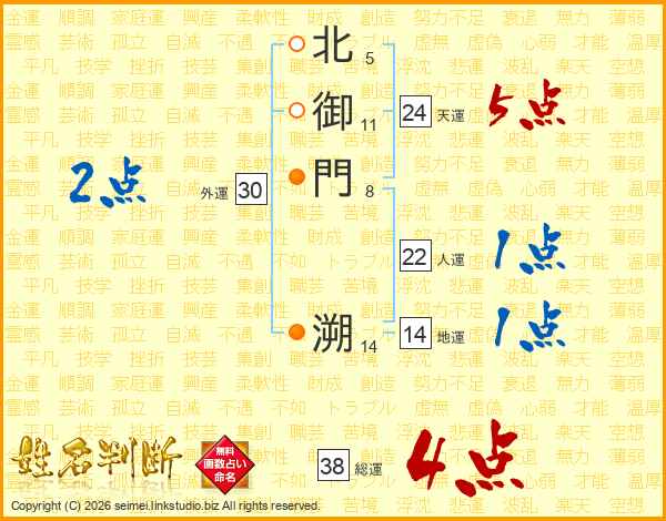 北御門溯さんの総運は38画の4点!