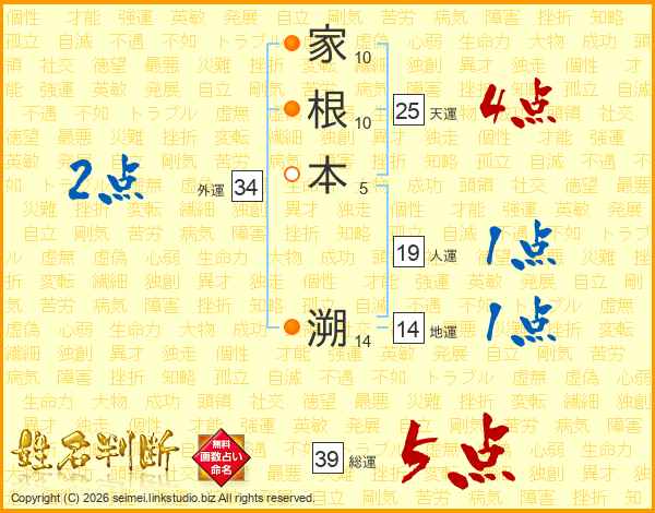 家根本溯さんの総運は39画の5点!