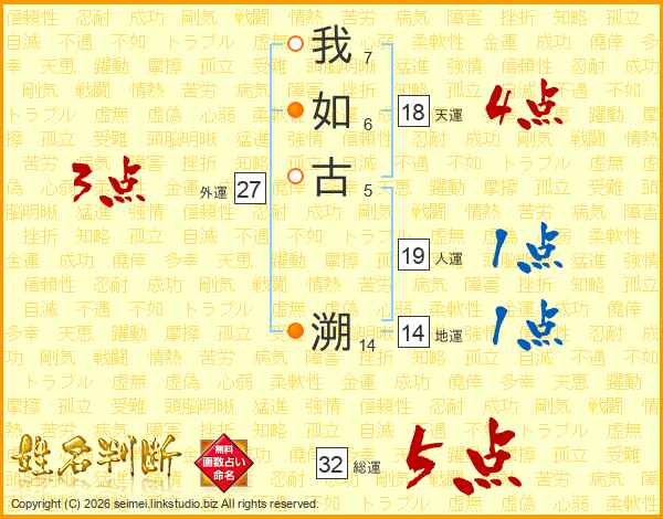 我如古溯さんの総運は32画の5点!