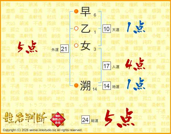 早乙女溯さんの外運は21画の5点!