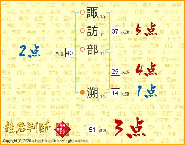 諏(15画)訪(11画)部(11画) 溯(14画)