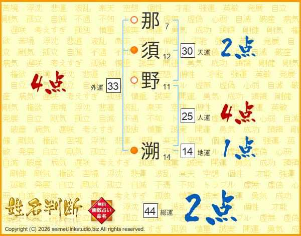 那須野溯さんの総運は44画の2点!