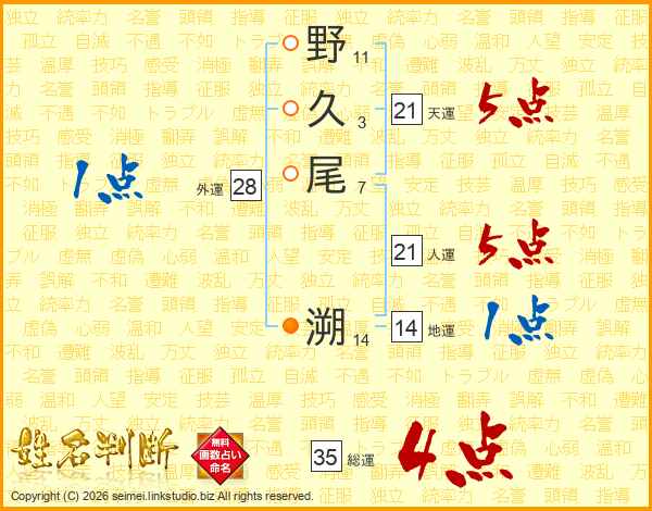 野久尾溯さんの総運は35画の4点!