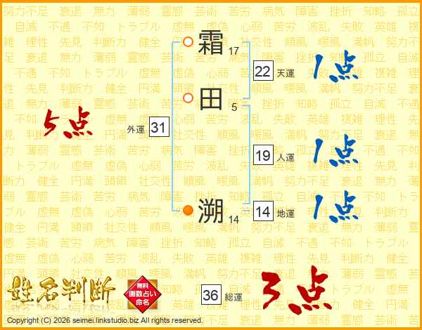 霜田溯さんの天運は22画の1点!